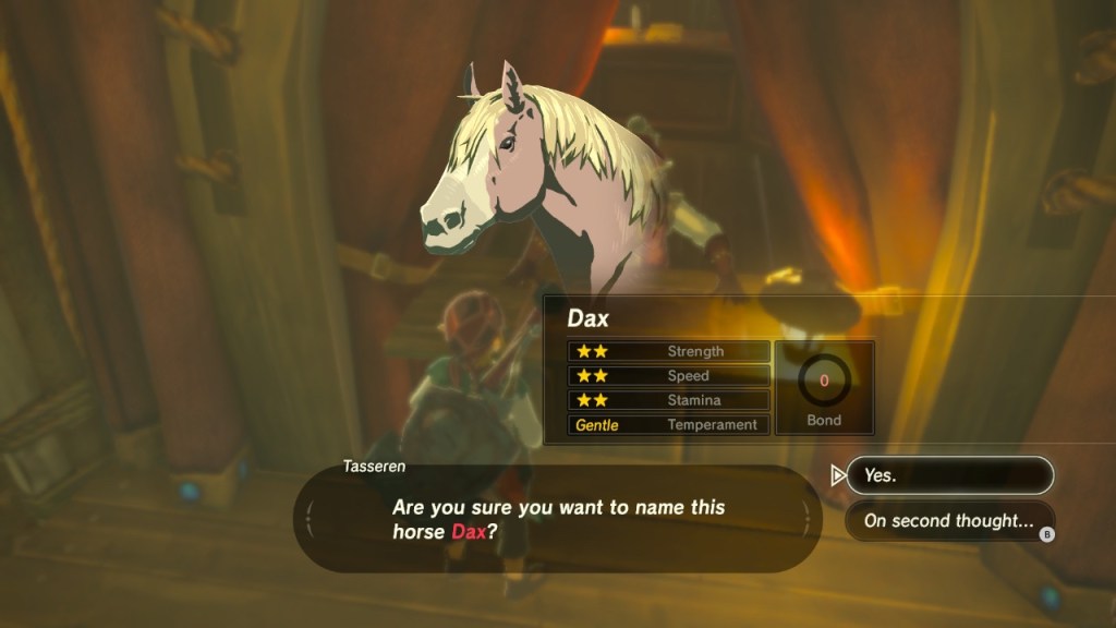 Naturally, I stopped off at the first stable to catch and saddle a horse, because c’mon, you gotta have a horse! Inside the stable I picked up a sidequest I’m 90% sure I have never done before. Then I found a guy who wanted me to enter a horse rearing competition.